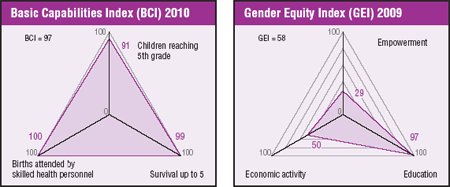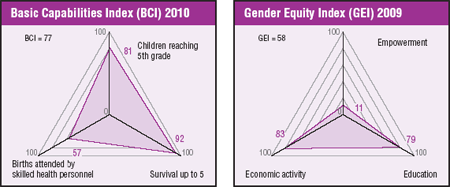 Progress was also made in the areas of gender equity and education. The proportion of girls in the educational system increased from 31.3% in the 1990-1998 period to 47.6% in 1999-2006. The net rate of children in basic education increased from 84.7% in 1999-2000 to 93.6% in 2006-2007, which means that 684,782 more children joined the school system. Coverage at higher educational levels expanded to a similar extent. In 2005 some 4 million people were enrolled in educational “missions.”