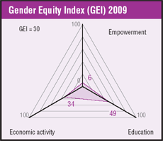 With regard to the commitment undertaken in Beijing to promote gender balance in its institutions, it can be seen that the State has made no effort to close the gender gap and that men still outnumber women in management positions. The share of women in Congress is at present only 9%.[18]