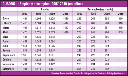 En el primer trimestre de 2010, la tasa de desempleo creció 1,22 puntos porcentuales respecto al trimestre anterior, afectando al 20,05%[1] de la población activa. Aunque en los últimos meses parece observarse una leve reducción, está aún por verse si se debe al carácter estacional de la estructura de empleo – donde los meses de verano son intensivos en su generación – o si puede tomarse como un signo de recuperación. La persistencia del alto nivel de desempleo y el estancamiento del acceso al crédito de pequeñas y medianas empresas tuvo un elevado costo político para el Gobierno, que fue aprovechado por la oposición. Pero las medidas más severas en materia de ajuste del gasto público y en la reforma laboral parecen haber sido motivadas por presiones externas – tanto de los estados miembros de la UE como de los mercados mundiales.