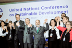 Delegados gubernamentales festejan el acuerdo alcanzado en Rio2012. (Foto: ONU/Maria Elisa Franco)