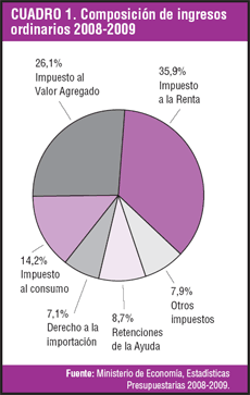 El Gobierno necesita una política fiscal que estabilice la economía y establezca controles sobre el monto y la estructura de los impuestos y los gastos, a la vez que promueva la redistribución de la riqueza. Debe también garantizar la adjudicación eficiente de los recursos públicos ya que ello es fundamental para el desarrollo económico y la transformación social a todo nivel. La generación de ingresos debe ir más allá de la administración, el cumplimiento y el monitoreo del sistema fiscal. Los ciudadanos deben exigir transparencia y rendición de cuentas con relación al uso de los recursos públicos en la mejora de la entrega de servicios públicos. El Cuadro 1 demuestra la asimetría de la composición de los ingresos.