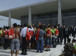 El detonante de la manifestación de unos 1,200 indígenas de varias etnias en Brasilia fue el borrador de proyecto de una ordenanza que el Ministerio de Justicia estaría produciendo. El grupo protestaba contra lo que considera otra iniciativa del Gobierno Federal para hacer descarrilar la demarcación de las tierras indígenas. La presidenta Dilma Rousseff no estaba en su lugar. » |