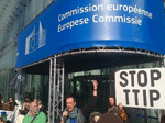 Activistas de organizaciones campesinas, sociales y ecologistas así como sindicatos de varios países europeos bloquearon esta mañana la entrada a la Dirección General de Comercio de la Comisión Europea en Bruselas. Protestaban así contra la cuarta ronda de negociaciones del Tratado Transatlántico de Comercio e Inversiones (TTIP) entre la UE y EEUU que tiene lugar esta semana. El acuerdo afectaría a los derechos ciudadanos, con recortes del derecho a la huelga o el principio de precaución. Traería más privatizaciones de servicios públicos, pérdida de empleo y amenaza medioambiental. » |
