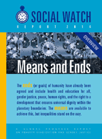 Le vieux débat sur les fins et les moyens s'occupe, en général, des procédures inacceptables qui revendiquent la légitimité en raison des résultats escomptés. Pas plus maintenant. Dans le débat international actuel sur les objectifs de développement pour les Nations Unies, les « fins » sont fixées si basses qu'aucun effort important n'est vraiment nécessaire de la part de personne. Roberto Bissio, le rédacteur en chef du Rapport Social Watch 2014, lors de son lancement le 9 juillet à New York à l’occasion de la réunion ministérielle du Forum politique de haut niveau de l'ONU, a commenté qu’aucun moyen n'est nécessaire si les objectifs n'ont pas de sens. Le rapport, intitulé « Fins et moyens », est un examen sommaire de cinquante rapports nationaux et une analyse des tendances mondiales, menés par les organisations de la société civile. Il surveille la manière dont le gouvernement et les institutions internationales font la mise en œuvre de leurs engagements solennels pour éradiquer la pauvreté, assurer la justice entre les sexes et promouvoir le développement durable. |