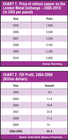 This scenario makes it obvious that the Government will have to turn to copper for its development resources, and doing so requires policies that are geared to the national interest. In every year since 2006 (except 2009) copper prices on international markets were extraordinarily favourable, and everything points to this trend continuing in 2010.