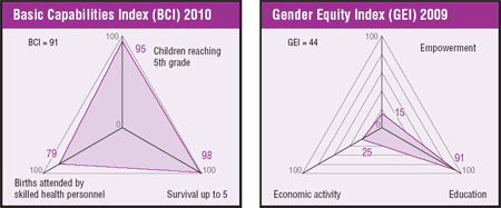 - MDG 3 – promote gender equality and empower women: Although the country has demonstrated its commitment through institutional arrangements, legislative changes and several initiatives and actions, there is still a long way to go – mainly in technical education, empowerment and women’s participation in politics.