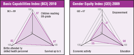 With regard to Goals 2 and 3 (achieving universal primary education and promoting gender equality and empower women), gender parity in primary and secondary education, girls are nearly on an equal footing with boys, but there are still problems of a lack of schools in some areas, poor infrastructure and children dropping out of school.