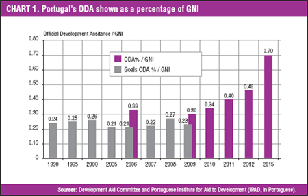 In order to fulfil its promise to increase ODA to 0.7% of GNI by 2015, Portugal drew up a new timetable in 2009 which anticipates gradual increases in assistance and sets an intermediate target of 0.34% of GNI by 2010.[5] However, keeping in mind the worsening economic crisis in Portugal – with cuts and restrictive budgeting policies intended to control the public accounts deficit– it appears to be practically impossible for the country to reach this objective. For the same reason, it is unlikely to reach 0.7% by 2015.