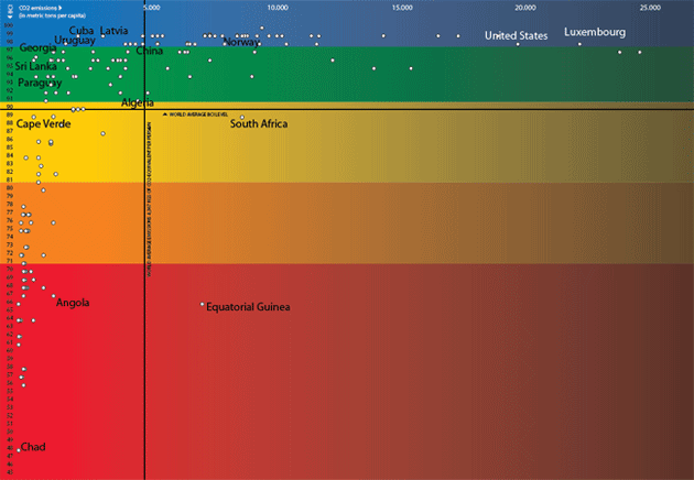 With carbon dioxide emissions of three tons of per capita a year, Costa Rica and Uruguay have managed to lower their infant mortality to the same level of a country that emits twenty tons a year: the United States. At the same time, with the same level of emissions than Norway, South Africa has a set of social indicators similar to that of Indonesia, which consumes five times less fossil fuels.
