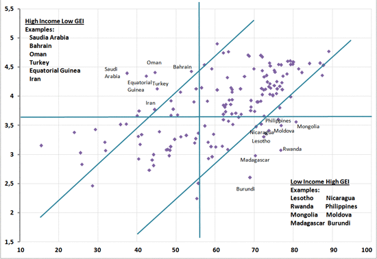 Differences in income between countries are not directly correlated to gender inequity. Countries such as Rwanda, Nicaragua, Bahamas and Philippines have reached high levels of equity, even when many women and men live in poverty. On the other hand, in countries that have acceptable average social indicators, such as Japan, Turkey and Saudi Arabia, these satisfactory figures mask the fact that there are huge gaps between men and women. This shows that equality in the structure of opportunities in a society is a goal that must and can be pursued regardless of economic power.