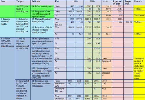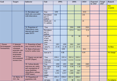 Table 1: India’s progress towards achieving the MDGs