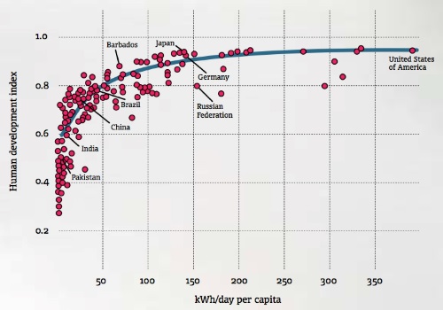 Sufficiency also works the other way – recognizing the need to curb excessive consumption of energy by the world’s elites and middle classes. Electricity use is among the starkest indicators of global inequality there is and the numbers are staggering. It is absurd, that an average Swede, for example, consumes over 200 times more electricity than does an average Tanzanian. An average U.S. citizen, in turn, consumes roughly double the amount of energy a European would, without any higher quality of life. 3