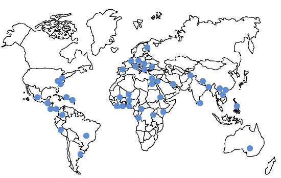 What do people think about these key objectives? Are they being met? Is the UN as effective and relevant as it can be? Does the UN truly serve the people in their organizational contexts? To answer these and other questions, Global Policy Watch --a joint initiative of Global Policy Forum and Social Watch-- organized a survey among local civil society organizations from around the world. A questionnaire was distributed to members of the Social Watch network, the Women's Major Group, the International Disability Alliance (IDA) and national organizations that have been directly or indirectly working with the UN. In turn, some of these groups further disseminated the questionnaire to colleagues and partners. The survey was conducted online over the period 1 – 20 December 2020. II. The RespondentsThe objective of the survey was to explore CSO perspectives on UNDS activities in countries with a regular UN programme presence (UN Resident Coordinator, Multi-country Office and UN Country Team). It received 44 respondents from “programme”countries. Of those, 41 responses came from national or sub-national organizations, and three came from regional organizations in the global South (in Africa, Latin America and the Arab region). Further, the survey received 14 responses from organizations based in countries where no UN Resident Coordinator is accredited. These include: seven replies from Western Europe, three from the United States, two from Central and Eastern Europe and one each from Australia and Puerto Rico. As the focus of this survey concerns the relationship between UN Country Teams and civil society, the analysis enclosed within refers primarily to the responses from programme countries. However, since the 2030 Agenda and the Voluntary National Reviews of its implementation are universal, when relevant, comments from “non-programme” countries are included, with identification of their origin. Figure 1: Approximate location of survey respondents