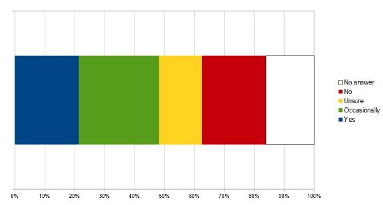 An even larger number answered “Occasionally”, which is far from a proper consultation, as shown by the following comments among those that answered “occasionally”: “The consultation with CSOs was limited to one day meeting dedicated to promote the government report and not to debate it or amend it”. (Arab NGO). “We are just invited through GNDR (Global Network of Civil Society Organizations for Disaster Reduction) to attend a National meeting to discuss the Annual document”. (African NGO). “Consultation was with select CSO network leads”. (Asian NGO). “The government took a lot of time (and money) in consultations, but in the end they dismissed the outcomes and hired UNDP to write a report in a contract as a consultancy”. (Latin American NGO). A participant that answered “no” commented: “The organizations requested information and held dialogues with the Ministry of Foreign Relations, and they offered to consult us about the document, but they only made it known to us once it was sent to the High Level Political Forum”. (Latin American NGO). Comments from those that answered “yes”: “Consultations with Civil Society during the drafting process of VNR have been extensive and the final report reflected inputs of Civil Society” (Asian organization). “Yes, but marginalized communities were not consulted” (Asian organization). Participation in the VNR processWhen asked about their own relation with the VNR process, over one third of the respondents declare that their organizations participated in it, even when only one fifth had declared in the previous question that the official VNR process included consultations with civil society. This shows that many organizations participated through forms other than the official process, particularly through “shadow” or “spotlight” reports. Figure 16: Own participation in VNR process (as percent of respondents from all countries)