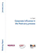 In a new working paper entitled "Corporate influence in the Post-2015 process" GPF's Lou Pingeot discusses the influence of transnational corporations in the Post-2015 process. This working paper by Brot für die Welt, Global Policy Forum and Misereor provides an overview of the main corporate actors in the post-2015 process and how they shape the discourse on development. The paper advocates for more transparency around the participation of corporations in UN processes, including their financial support to UN initiatives, and for more reflection on the risks of a corporate, private interests-driven development agenda. The paper draws conclusions from its findings and makes recommendations for how to deal with corporate interests in global policy making in the future.