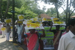 More than 300 homeless Sri Lankan tea estate workers marched to demand land and housing rights in the city of Kandy on Sunday 14th. They have been angered by a clause in the national budget which proposes leasing unused plantation land to businesses. |