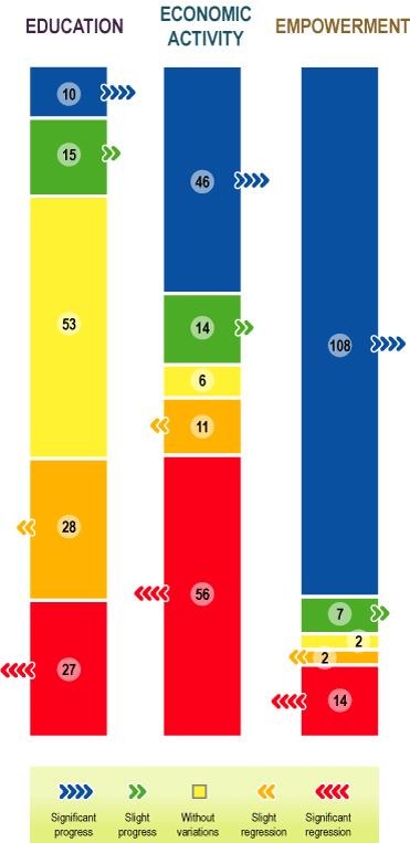 Recent evolution of the GEI componentsNumber of countries progressing and regressing
